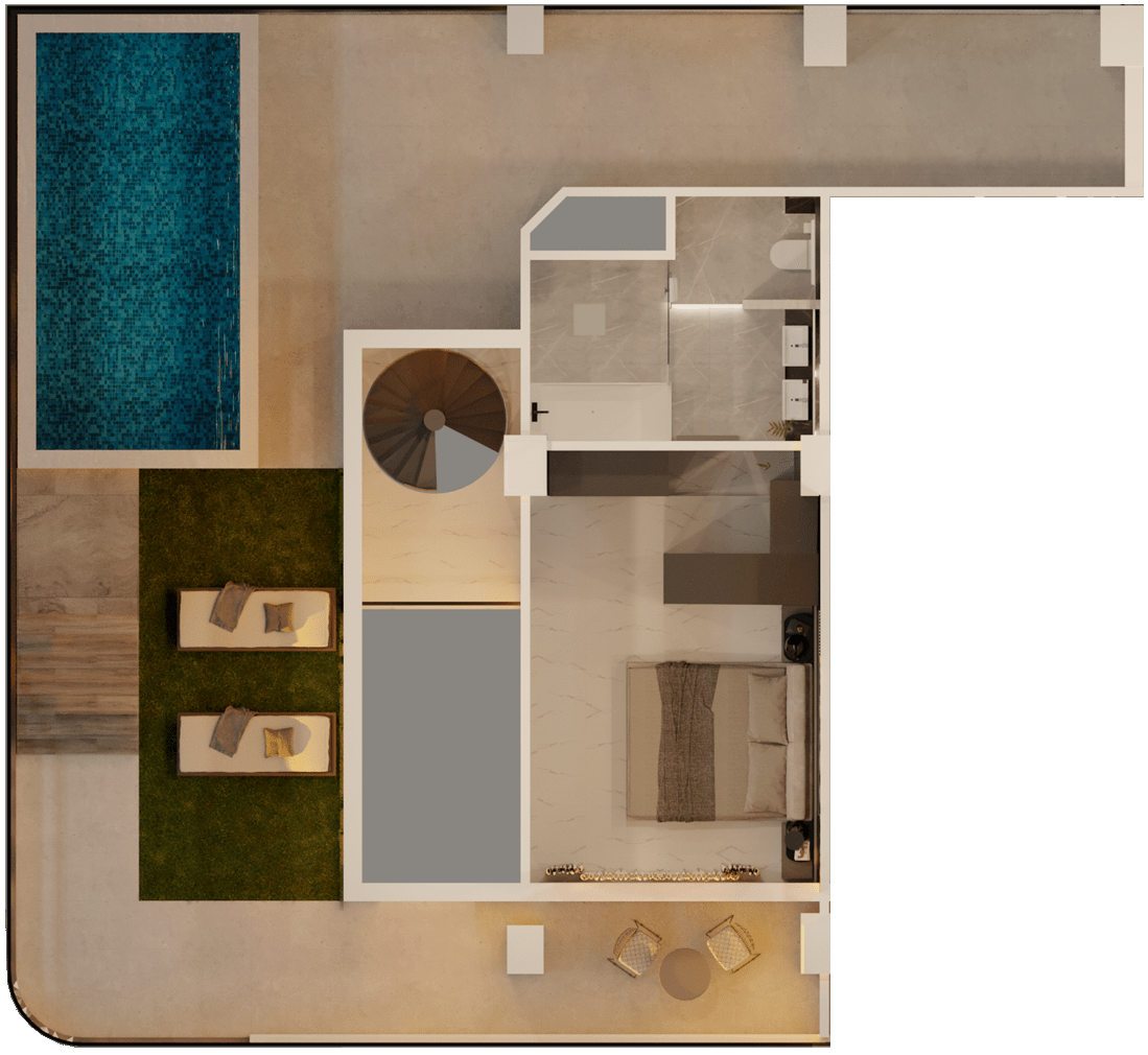 This high-end duplex with a private terrace & pool ensures an elite standard of comfort and well-being. Boasting panoramic unobstructed views featuring modern fixtures and fittings, spacious living, floor-to-ceiling windows & private wrap-around balconies with every room.